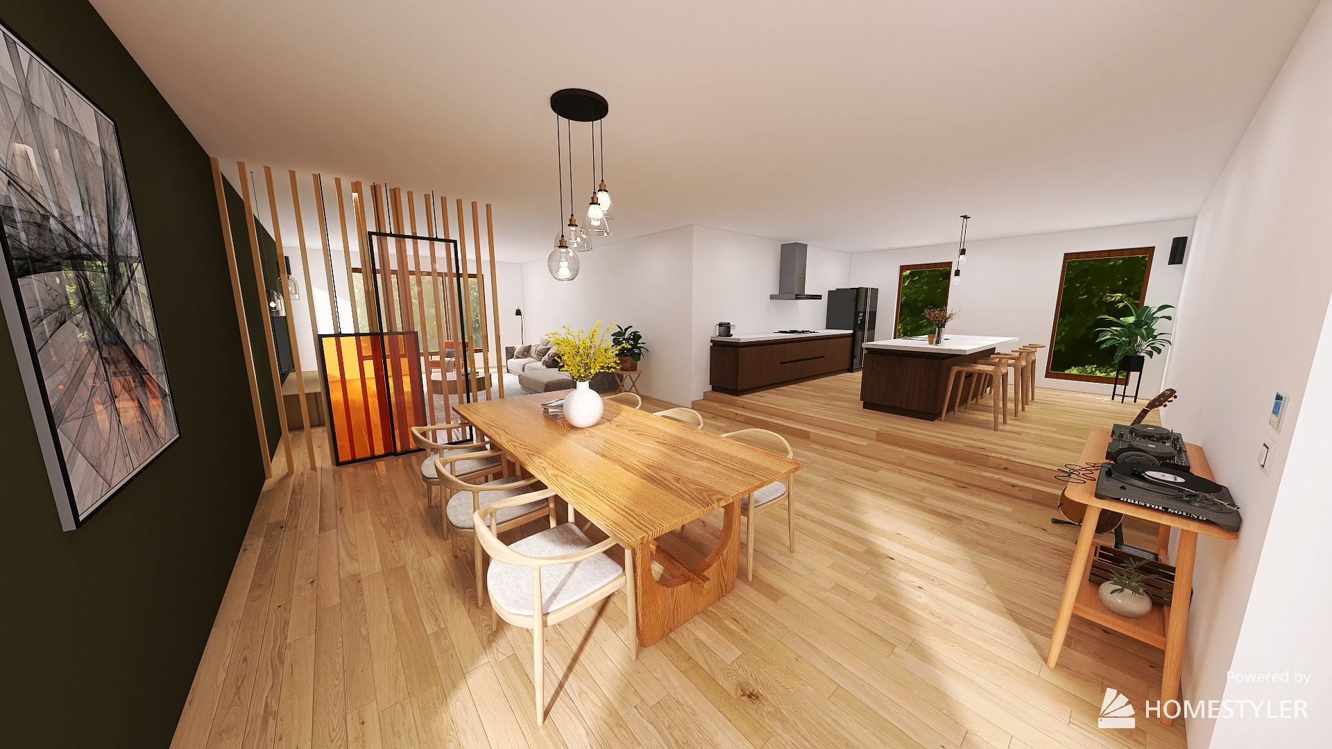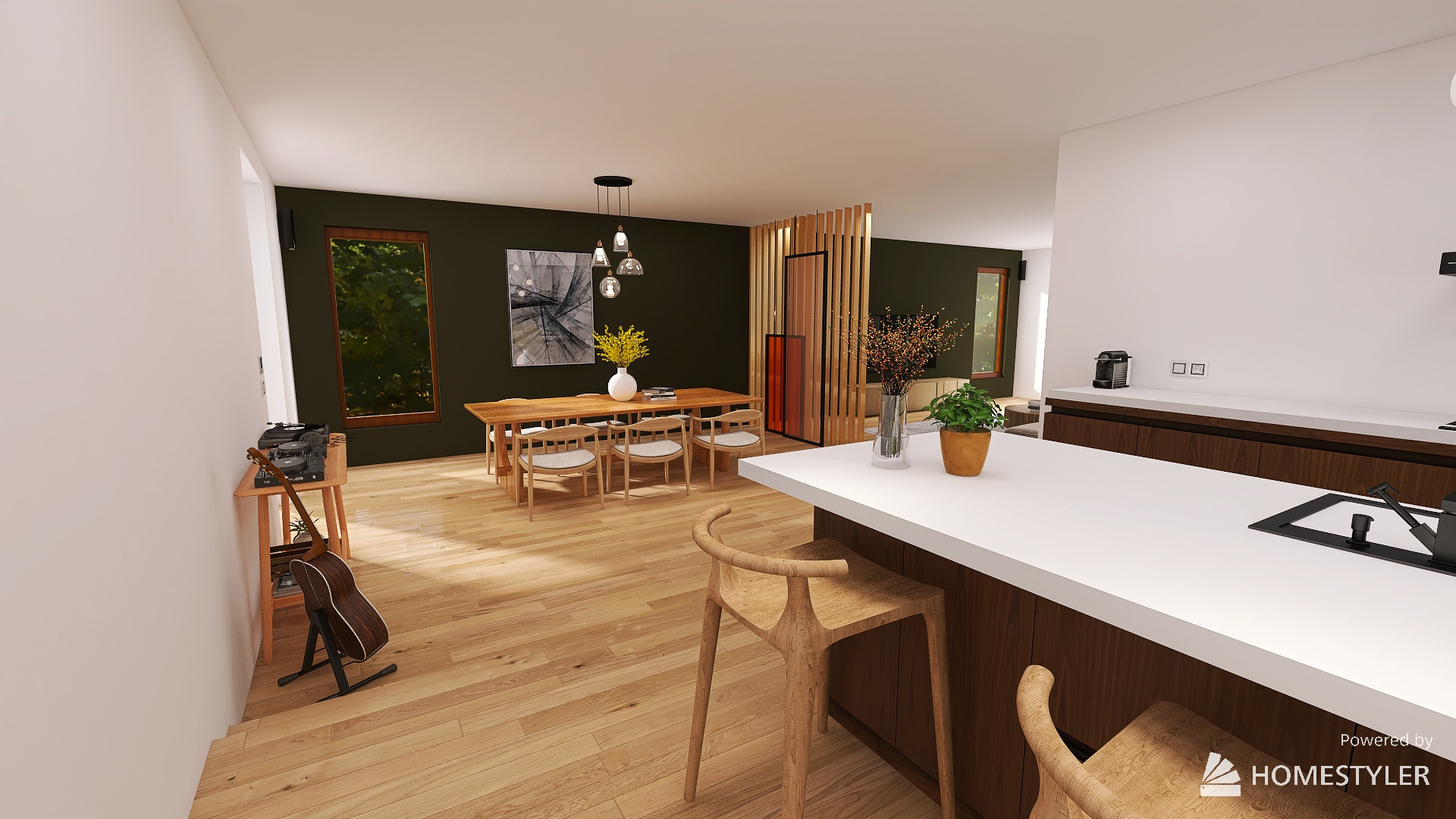 Dit was een project voor een artistieke man, waarin hij bepaalde eisen had voor zijn interieur. Zo moest er ruimte zijn voor zijn werk en hobby's.